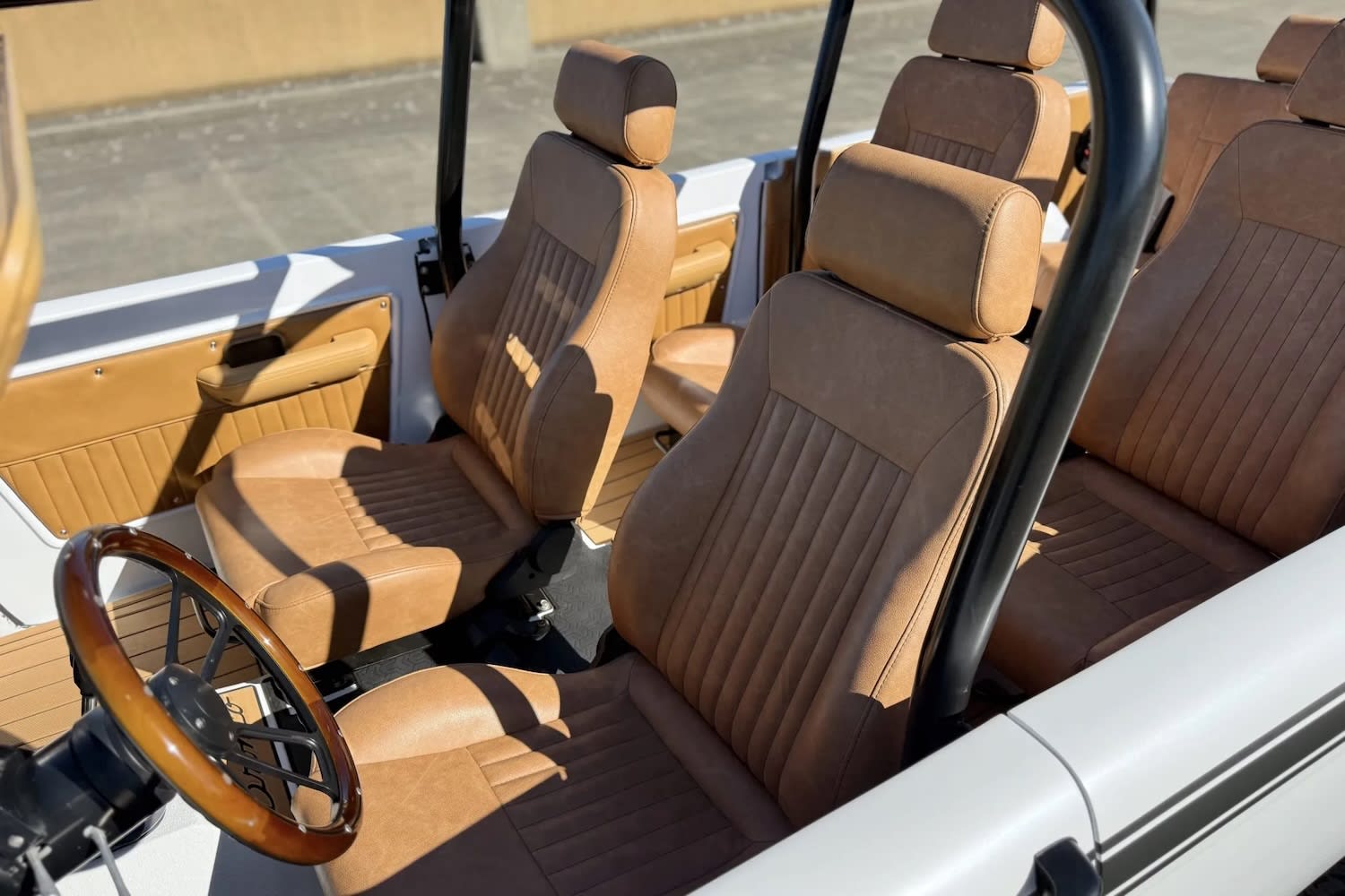 - تجهیزات مدرن: یک فرمان با لبه چوبی، نشانگرهای دیجیتال داکوتا دیجیتال (Dakota Digital) و یک واحد اطلاعات و سرگرمی صفحه لمسی (Touchscreen Infotainment) که قابلیتهای مدرنی مانند اپل کارپلی (Apple CarPlay) و اندروید اتو (Android Auto) را ارائه میدهد.