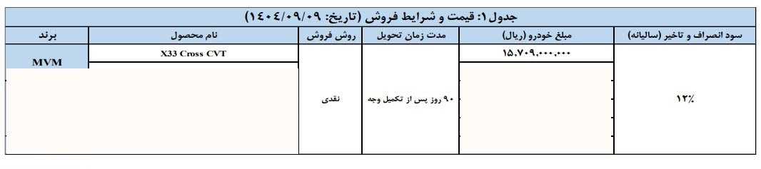 شرایط فروش ام وی ام X33 کراس / مهر ۱۴۰۴