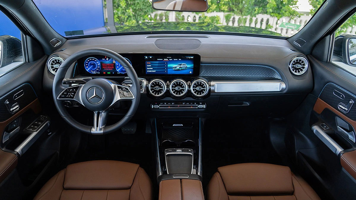 طراحی مرسدس بنز EQB تلفیقی از مینیمالیسم مدرن و هویت کلاسیک مرسدس است که خطوط ساده و سطوح تمیز آن موجب کاهش ضریب درگ و بهبود راندمان می‌شود. نمای جلو با پنل مشکی براق به جای جلوپنجره کرومی و چراغ‌های باریک LED، جلوه‌ای یکپارچه و مدرن ایجاد کرده است. نمای جانبی با خط شانه ممتد، پنجره‌های حاشیه‌دار کرومی و رینگ‌های آلیاژی خاص سری EQ، تعادل و پویایی بدنه را حفظ می‌کند و نمای عقب با چراغ‌های یکپارچه و سپر خوش‌تراش، زبان طراحی خانواده EQ را تکمیل می‌کند. کابین این خودرو شامل دو نمایشگر دیجیتال پیوسته، کنسول مینیمال و صندلی‌های ارگونومیک است که فضای داخلی جادار و راحتی مناسب برای استفاده خانوادگی فراهم می‌آورد. برخی نقاط ضعف شامل استفاده گسترده از سطوح براق مستعد خط و خش و متریال داخلی نسبتاً ساده نسبت به مدل‌های بالاتر خانواده EQ است. امکانات مهم شامل سقف پانوراما، در صندوق عقب برقی، سیستم تهویه اتوماتیک، ۷ کیسه هوا، شارژر بی‌سیم، پدل شیفتر بازیافت انرژی، سنسور نور و باران، کروز کنترل تطبیقی و دستیار رانندگی بین خطوط هستند.