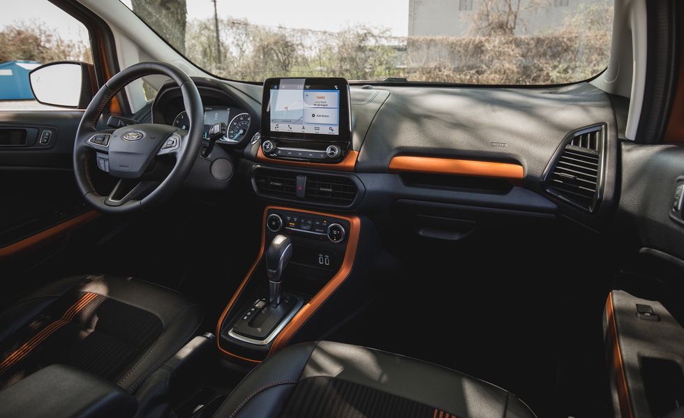 چه موتور ۱۲۳ اسب بخاری سه سیلندر روی آن باشد یا چهار سیلندر ۱۶۶ اسب بخاری، فورد اکو اسپرت به هیچ وجه خودروی سریعی نیست. هر دو موتور به یک گیربکس شش دنده اتوماتیک متصل شده اند و به طور عجیبی، قدرت بکسل آن ها از بسیاری از رقبای اکو اسپرت بیشتر است. ما با هر دو موتور رانندگی کرده و می توانیم تایید کنیم که در شتاب گیری هیچ یک حرفی برای گفتن ندارند. مثلا هنگام حرکت از پشت چراغ قرمز داخل شهر فورد اکو اسپرت شما را ناامید خواهد کرد. این خودرو با موتور ۴ سیلندر توانایی بکسل تا ۱ تن را دارد که عدد بسیار خوبی است. در مدل سه سیلندر، ظرفیت بکسل خودرو معادل ۷۰۰ کیلوگرم می باشد. سواری فورد اکو اسپرت مدل ۲۰۲۱ در سرعت های پایین بسیار بهتر از سرعت های بالاست. داخل ترافیک شهر مشکلی از بابت شتاب گیری قطعا نخواهید داشت، ولی فرمان گیج و سواری پر سروصدای آن تجربه سواری خوبی در اختیار شما نخواهد گذاشت. در حالی که هنگام رانندگی ناهمواری های جاده به راحتی به داخل کابین منتقل می شوند، سیستم تعلیق نرم آن در مدل تیتانیوم که ما تست کردیم به خوبی از پس دست اندازها برآمد.