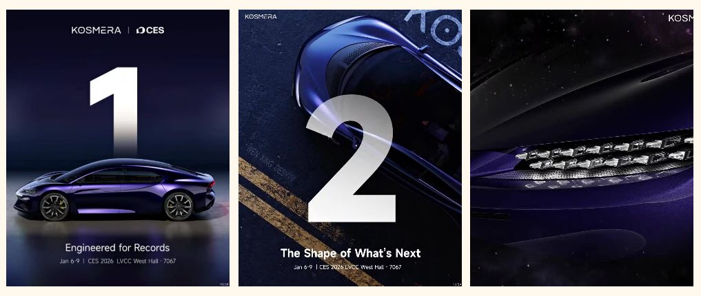برند تازهوارد کازمرا (Kosmera) که به اکوسیستم شرکت چینی دریم (Dreame) وابسته است، بهتازگی تصاویر و تیزرهای رسمی از دو خودروی برقی آینده خود منتشر کرده است. این دو خودرو قرار است در نمایشگاه CES 2026 یا نمایشگاه بینالمللی فناوری مصرفی (Consumer Electronics Show) که از ۶ تا ۹ ژانویه ۲۰۲۶ در شهر لاسوگاس آمریکا برگزار میشود، برای نخستینبار در معرض دید عموم قرار بگیرند.