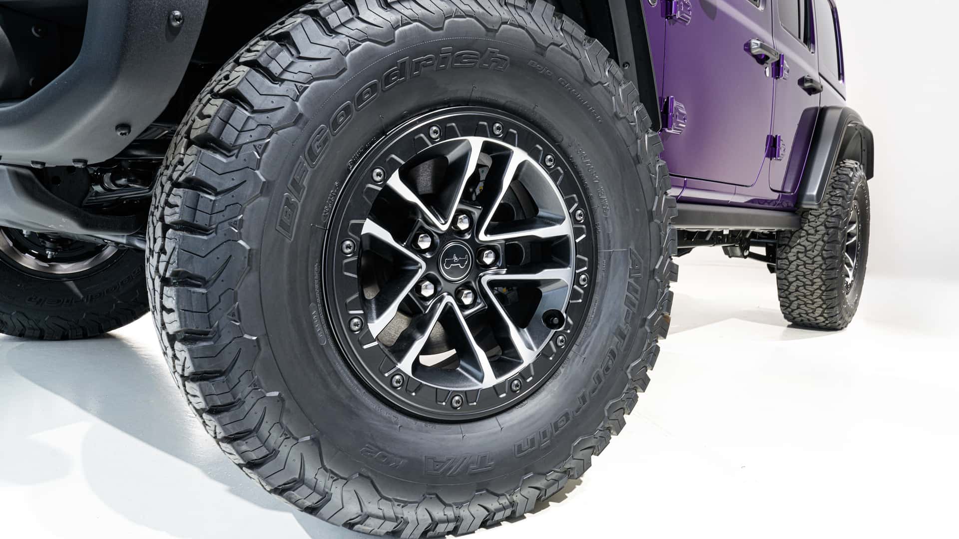 - رینگهای ۱۷ اینچی با قابلیت قفل مهره لاستیک (Beadlock-Capable Wheels): این رینگها کمک میکنند تا در فشار باد کم، لاستیک از رینگ خارج نشود.