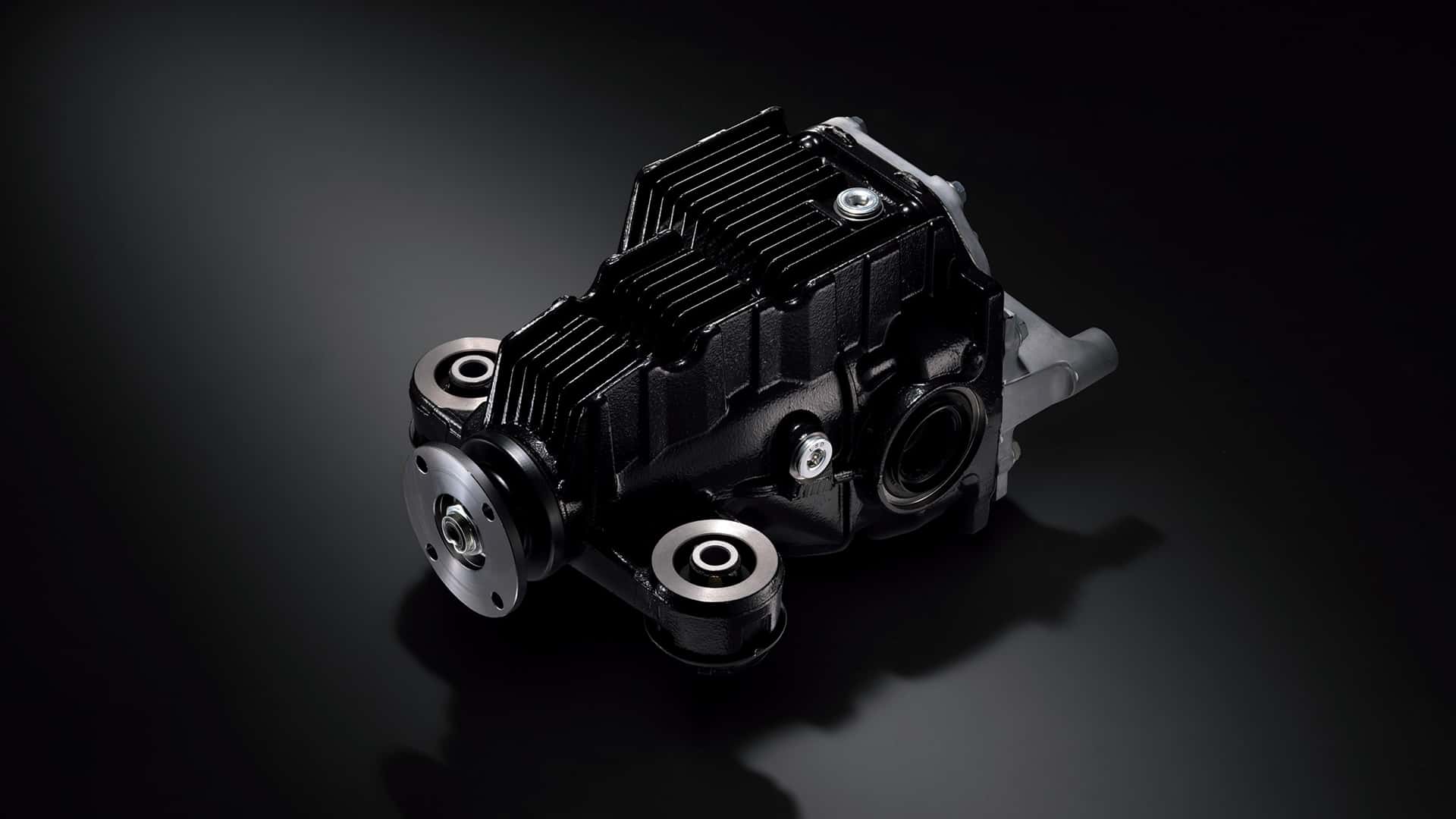 - خنککاری دیفرانسیل: پوشش دیفرانسیل عقب (Rear Differential Case) که از خودروی مسابقهای به عاریت گرفته شده، دارای بالههای خنککننده (Cooling Fins) است.