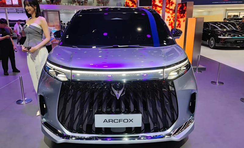 در نمای جلو، یک نوار LED سرتاسری دیده می‌شود که امضای طراحی بسیاری از خودروهای برقی جدید چینی است. جلوپنجره بزرگ با طرح آبشاری و لوگوی Arcfox در مرکز آن، ظاهر خودرو را رسمی و لوکس نشان می‌دهد.