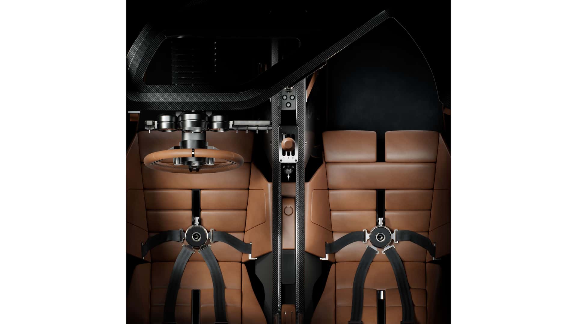 تقریباً تمام فضای داخلی از فیبر کربن بدون روکش تشکیل شده و تمام دکمهها و سوییچهای کابین از جنس تیتانیوم و آلومینیوم صلب ساخته شدهاند. صندلیها با چرم «کُنولی» (Connolly Leather) و تزیینات آلکانتارا (Alcantara) پوشیده شدهاند، که امکان سفارشیسازی برای مشتریان وجود دارد.