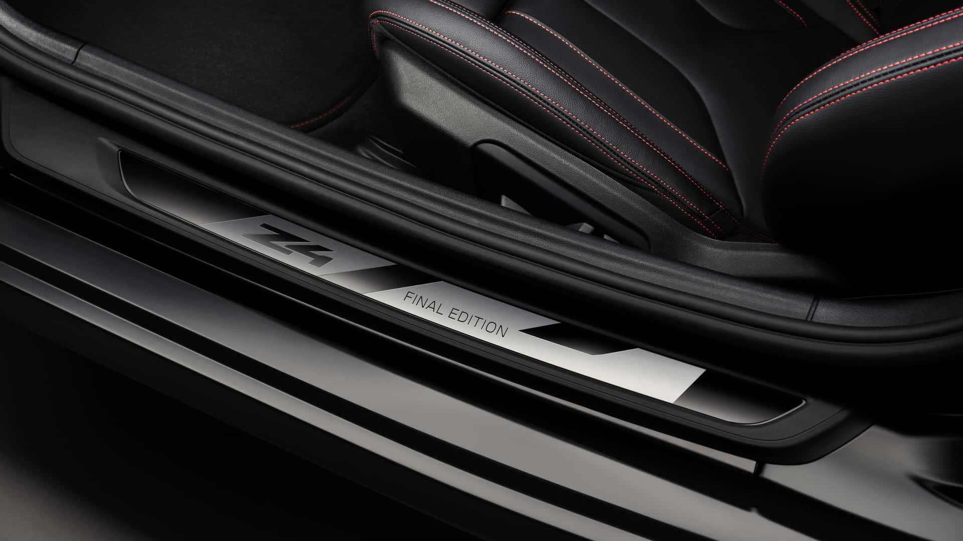 • پلاک‌های رکاب: برای یادآوری اینکه در حال رانندگی با Z4 نسخه نهایی هستید، پلاک‌های رکاب (Door Sill Plates) اختصاصی نصب شده‌اند.