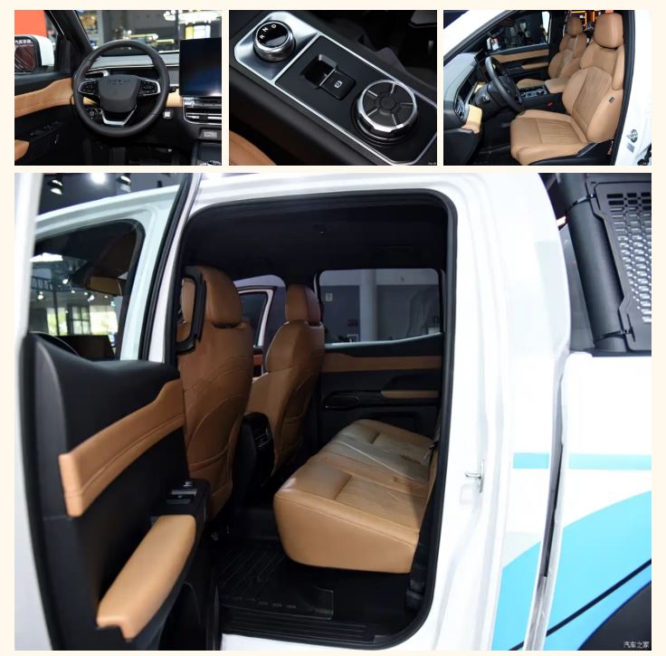 فضای داخلی Himla EV مدرن و کاربردی طراحی شده و ترکیب رنگ قهوهای روشن و مشکی به همراه تزیینات کرومی، حس یک خودروی بهروز را منتقل میکند.