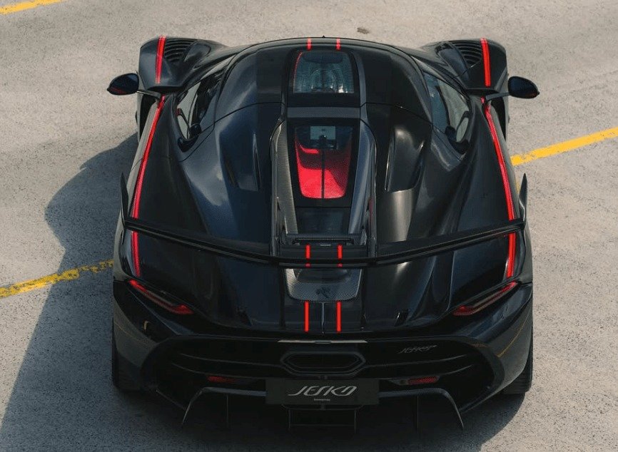 شاسی اصلی جسکو که در آتش سوخت، شماره ۷۳۵۸ را داشت و با پوشش کربن لخت کونیگزگ (Naked Carbon Finish) تزیین شده بود.