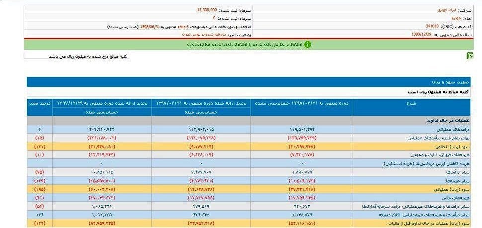 ایران خودرو لیدری است که بازار سرمایه در یک ماه اخیر به حرکت آن امید بسته است ، ولی در صورتهای مالی ۶ ماهه ایران خودرو شاهد ثبت زیان ۲۰۲۹ میلیارد تومانی به عنوان زیان ناخالص شرکت هستیم.