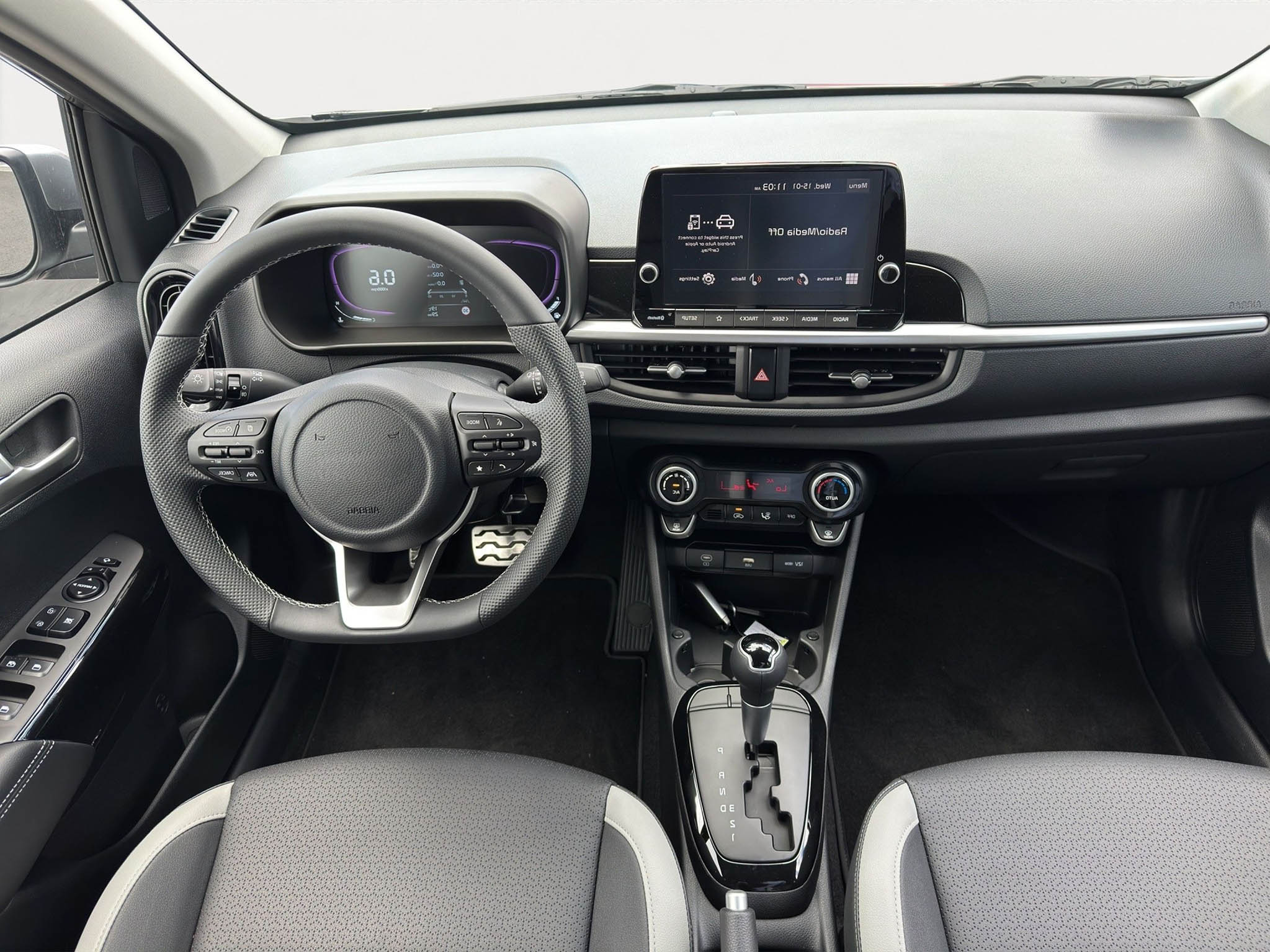 - نمای جلو: دماغه (پوزه) خودرو کمی پفکرده به نظر میرسد و همراه با سپری حجیم و چراغهایی که به سامانه روشنایی در روز (Daytime Running Lights) مجهز هستند، نمای جلوی پیکانتو را خشن و در عین حال دوستداشتنی کرده است. شیب تند کاپوت پیشرانه نیز بر این حس تأکید میکند.