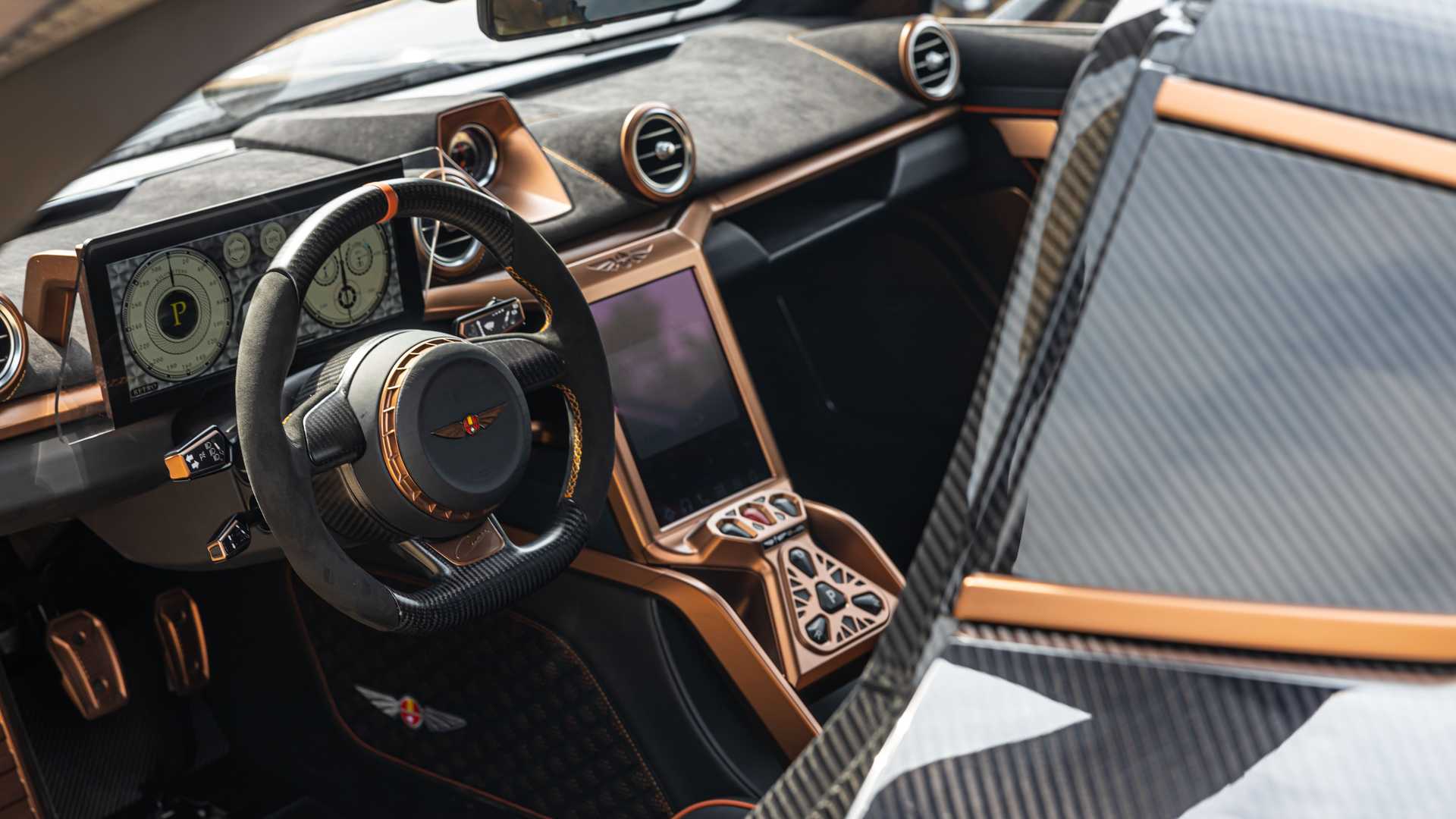 کابین هیسپانو سویزا کارمن از طریق درهای پروانه ای برقی قابل دسترسی است که به اندازه کافی باز نمی شوند تا ورود و خروج راحت تر را فراهم کند. در نمای داخلی از ترکیب رنگ برنز و مشکی استفاده شده است و فضای سر بسیار خوبی نیز دارد. جزئیاتی مانند گرافیک سفارشی ابزارهای دیجیتال با رندر واضح و صفحه نمایش لمسی نیز بسیار جذاب است.
