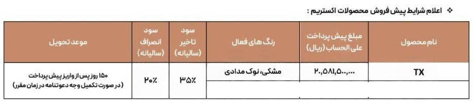 شرایط فروش اکستریم TXL / مهر ۱۴۰۴