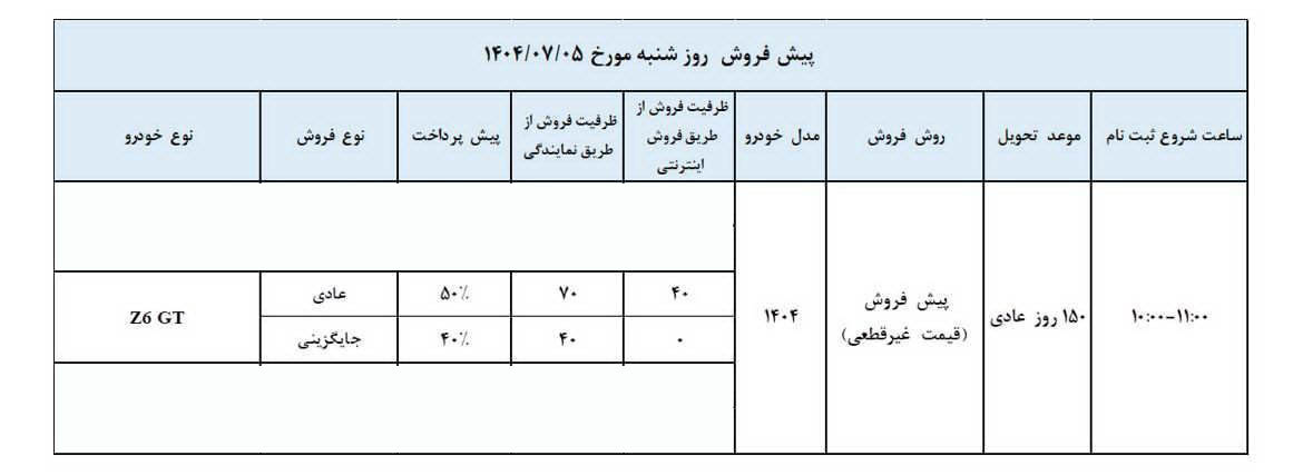 بروزرسانی ۳۱ شهریور ۱۴۰۴: مدیران خودرو در مهر ۱۴۰۴، فروش محصولات خود را با شرایط ویژهای برای سازمانها و ارگانهای طرف قرارداد خود آغاز خواهد کرد.
