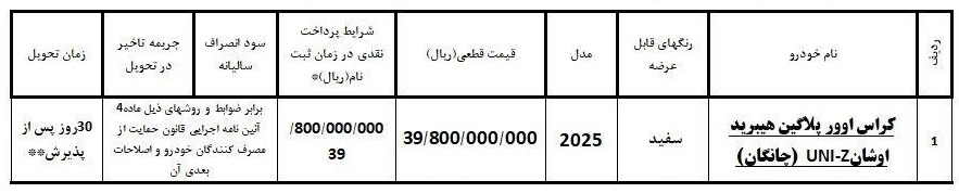 بخشنامه فروش کراس اوور اوشان UNI-Z (چانگان) برای متقاضیان منتخب سامانه یکپارچه فروش خودرو، بهصورت رسمی فعال شد.