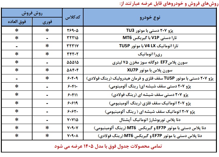 در محله اول طرح های فروش مطابق جدول است و در مرحله دوم فروش که از تاریخ ۲۶ بهمن اغاز میشود تمامی خودروها به صورت فروش فوری هستند